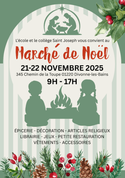 Chaque année, le week-end qui précède le temps de l’Avent, l’école et le collège Saint Joseph de Divonne organisent une Vente de Noël dont tous les bénéfices sont reversés au corps enseignant. Sur ces deux journées, le vendredi 21 novembre et le samedi 22 novembre, de nombreux stands sont proposés pour toute la famille. Ces […]