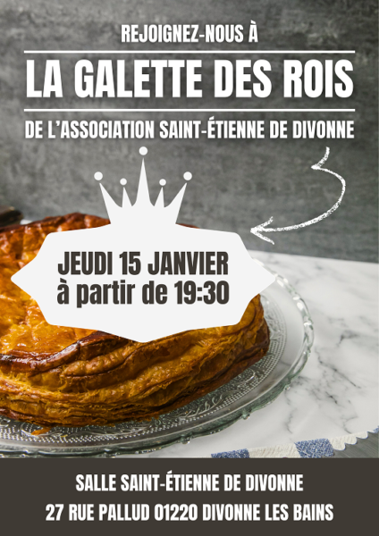 L’ASED (Association Saint-Étienne de Divonne) a le plaisir de vous inviter à partager sa Galette des Rois, JEUDI 15 JANVIER à partir de 19:30 à la Cure de Divonne. Un moment convivial pour célébrer ensemble l’Épiphanie un peu en retard. Venez nombreux !